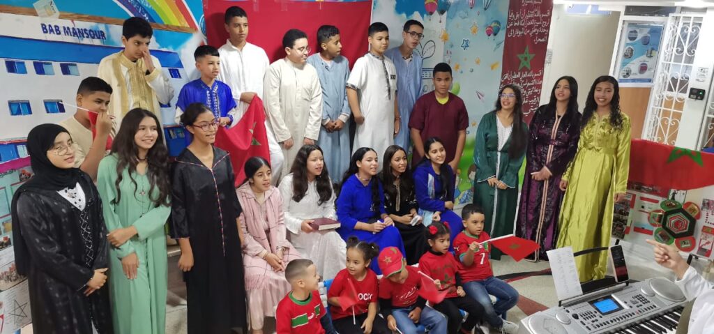 وقدم تلاميذ المؤسسة التربوية لوحات فنية عبارة عن أناشيد وأغان وطنية تخلّد للمناسبة العظيمة، مثل رائعتي “نداء الحسن” و”لعيون عينيا” بمشاركة المجموعة الصوتية للمؤسسة، بعد أن خضعت لتداريب مكثفة وتم انتقاء أجود الأصوات من كافة المستويات.